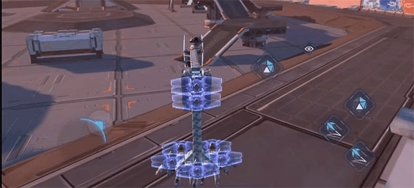 其次,就是我们之前提到的磁暴装置——在核心前方的方块上放置一面盾牌,盾牌上方再设置磁暴装置,这样就能阻止敌人下落时用钩爪攀爬上来。