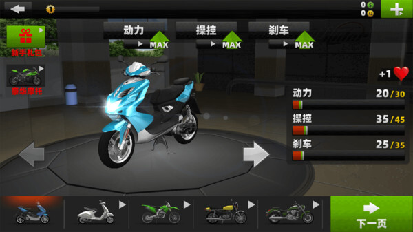 为你的摩托车进行升级,让闯关变得更有把握。
