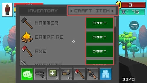 3、在CRAFTITEM界面,我们可以使用一定的物资,再点击CRAFT制作对应工具,帮助我们更快捷的获取物资。