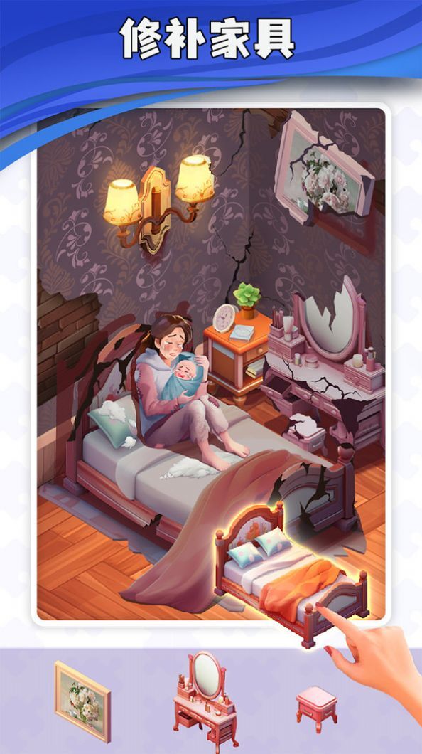 2、收集道具和工具来修复不同类型的房屋问题;