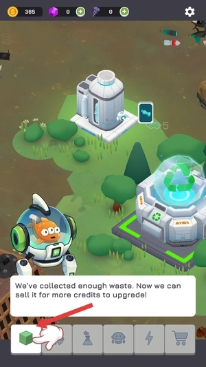 3、当提示收集足够废料时,点击下方绿色方块图标,进入资源售卖界面,准备出售废料换金币。