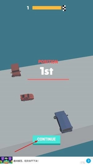 3、比赛结束后要是取得靠前的名次,点击CONTINUE按钮就能继续参加下一场赛事。