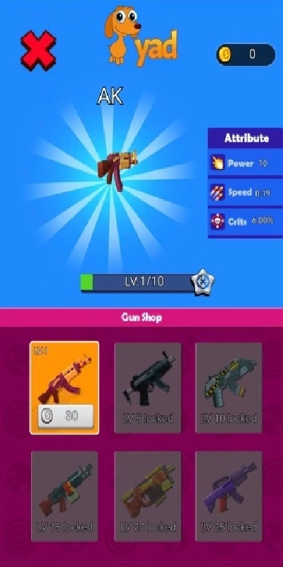 2、点击商店,用金币购买一把武器,接着对自己的武器进行升级,之后返回首页就能开启战斗了。