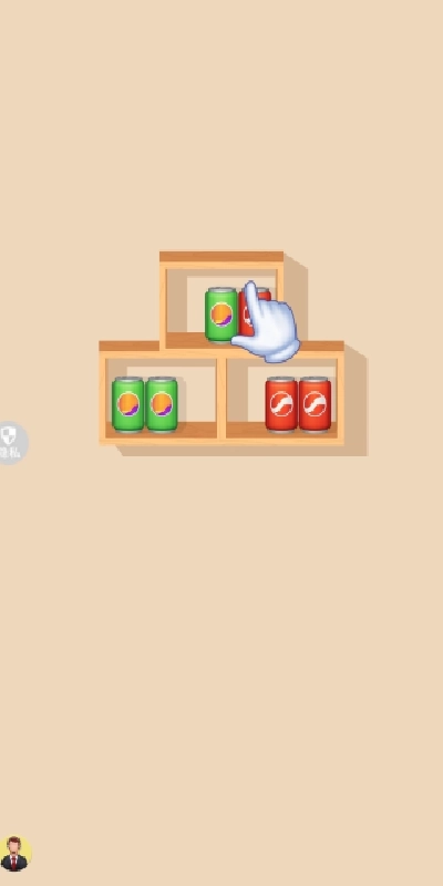 1、进入游戏后,你要根据手指的指示去操作,将相同颜色的饮料移动到一起。