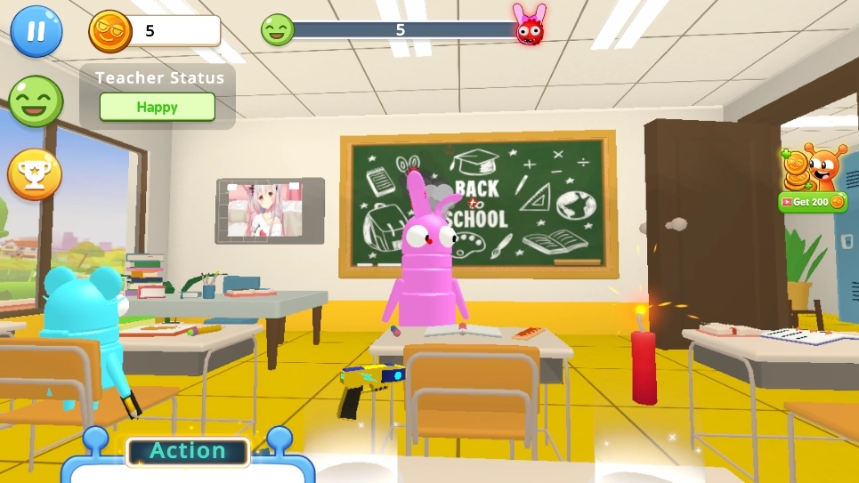玩家需要在老师和同学们的眼皮底下巧妙策划各种恶作剧,制造出令人意想不到的滑稽场面。游戏的操作简单直观,玩家可以利用各种道具和策略来执行恶作剧,同时还需要躲避老师的追捕和同学的干扰。