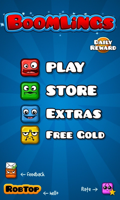 Boomlings游戏是一款卡通画风的休闲闯关游戏,以消除玩法为核心。玩家在游戏中将会滑动屏幕移动各种形状的方块,相同形状的方块移动到一起,只要三个及以上的方块在一块,就能爆炸消除。爆炸的特性非常酷炫,一次爆炸的方块越多,特效越精美。