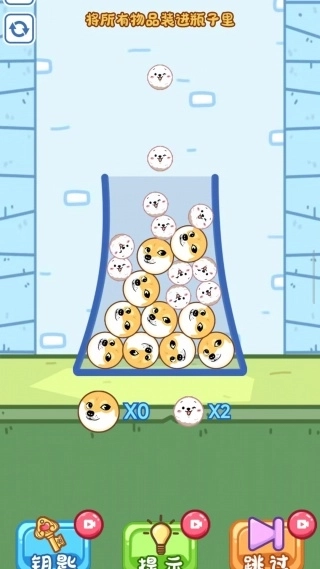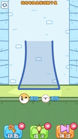 2、如图所示,将所有的狗头猫头全部装进瓶子里,待下方的数值变为0后就算完成本关任务。