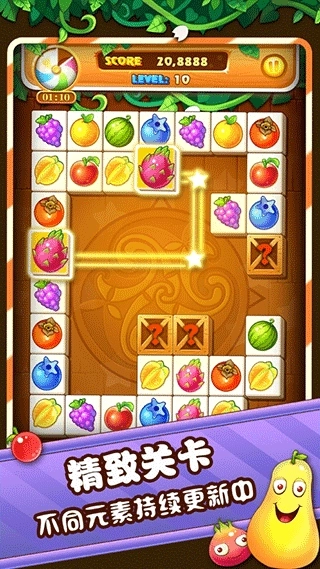 经典模式复刻了最初的纯粹乐趣,没有倒计时带来的压力,唯有水果碰撞时清脆的消除音效与舒缓的动画节奏。