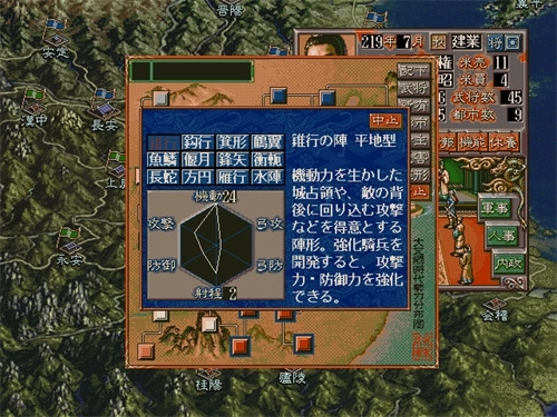 把所有可招募的人才都招揽过来,基础能力数值自然是越高越理想——武力关乎训练、作战与单挑;智力影响计谋与军事部署;内政就是负责政务管理;魅力则是君主自身的吸引力,当然越高越好。武将掌握的阵形和战斗技能也越多越好,像妖术这类特殊技能更是厉害。另外别忘了通过赏赐来提升他们的忠诚度。