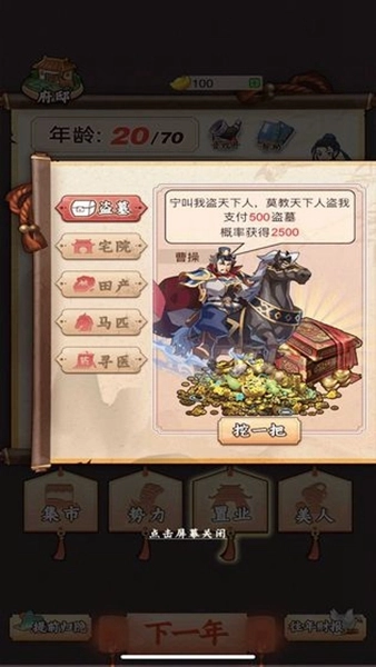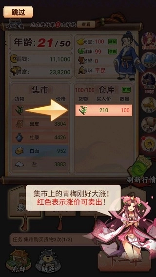 《一亿三国梦》这款游戏以三国时代为背景,是模拟经营类作品,它巧妙地把现代商业策略和历史战争元素融合在一起。玩家会穿越到东汉末年,从一无所有开始积累财富,依靠精明的商业运作一步步打造属于自己的商业帝国。游戏刚开始时,玩家只有少量启动资金,得通过抓住市场的波动来赚取第一桶金,而且随机事件系统还为游戏过程增加了策略上的深度和变化。