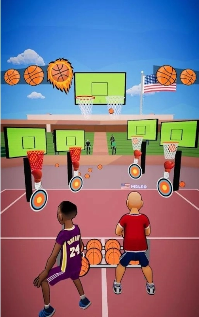 在这款游戏里,玩家可以在不同距离处进行定点投篮,通过多次投篮并计算得分来一较高下。