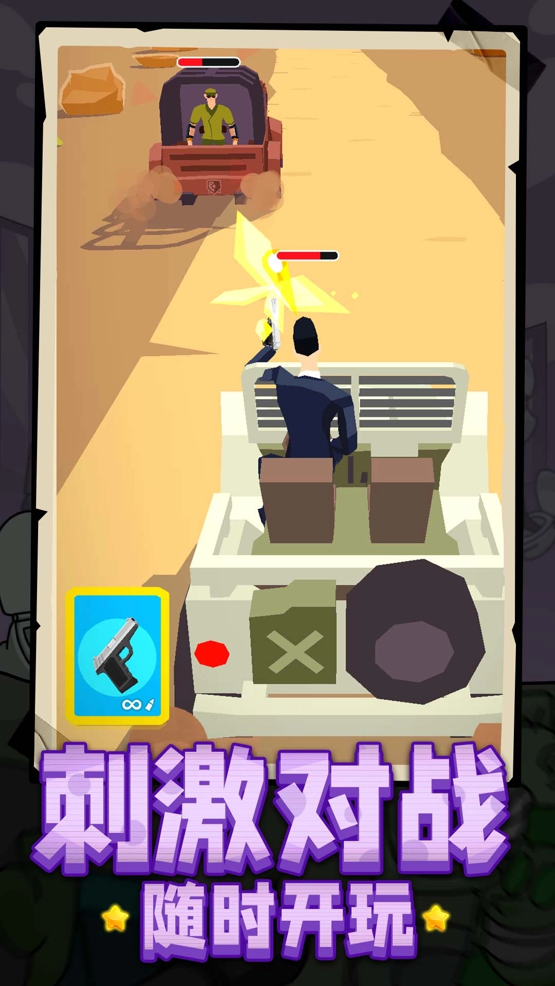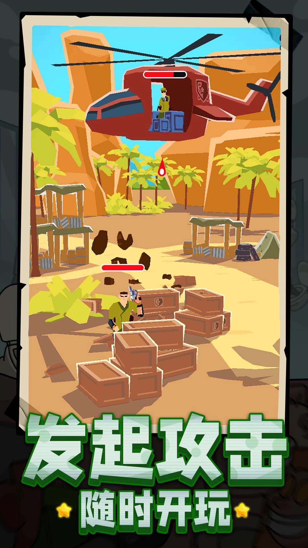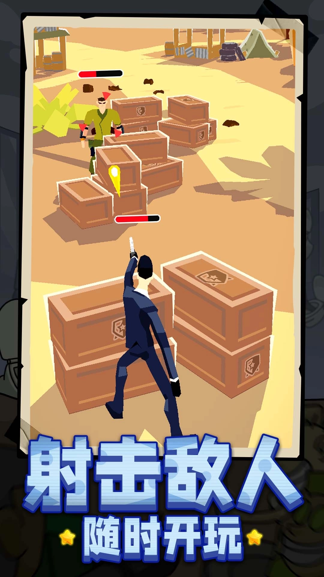 1.进入关卡后,你会看到主角躲在箱子后面,点击屏幕主角就会起身攻击敌人。