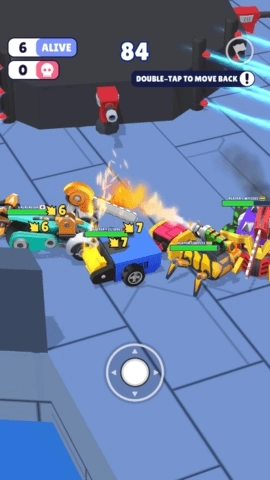 您能够借助简洁易懂的操控方式来指挥自己的战斗机器人——只需拖动即可让机器人在竞技场内移动,它会自动对对手发起攻击。