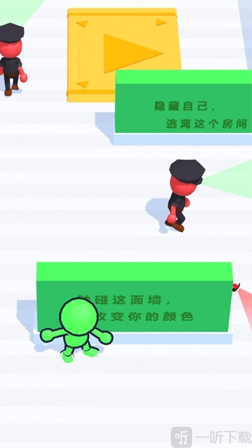 这是一款特别有趣的休闲娱乐小游戏,玩家能借助各种地形巧妙隐藏自己。面对敌人的搜索时,你得小心应对——靠近蓝色墙面就能变成蓝色,靠近黄色墙面则会变成黄色。