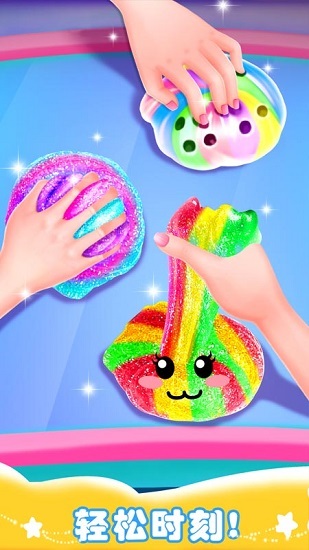 在模拟器里,玩家能借助超级粘液模拟器尝试蓬松水晶泥DIY与彩虹独角兽水晶泥DIY。想知道蓬松slime的制作方法吗?只要把黄色黄油和超级粘液通过超级粘液模拟器混合就行啦!你还能在衣橱处瞧见彩虹水晶泥,已经按捺不住想用slime捏橡皮泥、粘积木了吧?最近压力是不是有点大?那就来这款彩虹休闲类游戏里消磨空闲时光,捏出一个超有创意的橡皮泥,释放压力,尽情享受创作带来的快乐吧!