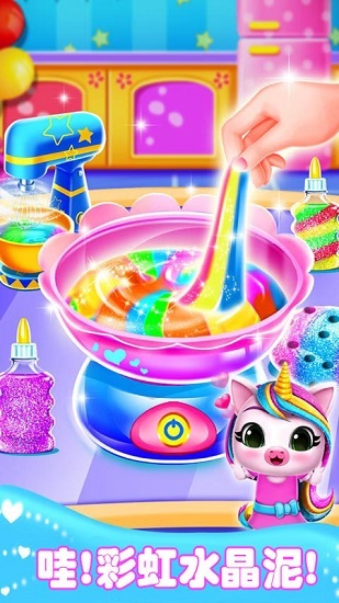 彩虹水晶泥模拟是一款主打模拟制作史莱姆(水晶泥)的休闲益智游戏,它配备了矿泉水、胶水、苏打粉、闪粉、食物色素等数十种材料,玩家能够自由把控各种材料的配比,借助搅拌、拉伸、捏合等一系列操作来完成水晶泥的制作。比如,添加闪粉可以让水晶泥呈现出闪亮的效果,放入苏打粉则能对其粘稠度进行调节,逼真地还原了现实里手工制作的感受。