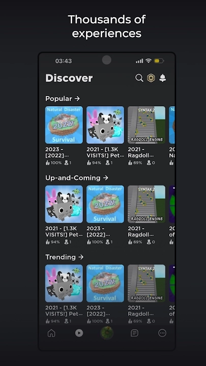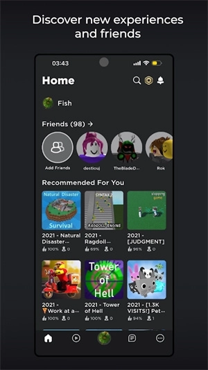 3、渴望开启一场史诗级的冒险之旅?期待与全球各地的对手同台竞技?亦或是只想和好友们在线畅快闲聊?我们的社区创作世界库持续扩充,每日都有新奇有趣的体验等你来探索。