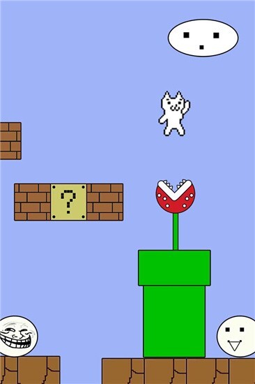 喵里奥是一款趣味十足的冒险游戏,它在内容上高度模仿超级玛丽,却以魔性又高难度的设定著称,因此常被玩家戏称为“超级玛丽变态版”。游戏里的主角不再是马里奥,而是一只猫咪。玩家挑战时得格外留意画面中无处不在的危险:天上的云可能暗藏杀机,地上的尖刺会直接造成伤害,还有隐身的砖块、突然窜出的幽灵——这些都可能让玩家瞬间失败。此外,游戏中还有更多意想不到的死亡陷阱:原作里能顶开的宝箱,这里面可能跳出巨型怪物;藏着食人花的草筒,说不定会突然冒出幽灵;甚至跳得太高碰到天边的云彩,也会被直接刺死。