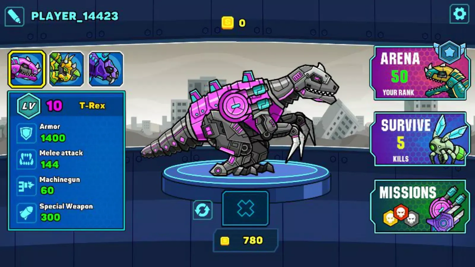 在《统治者战斗恐龙》里,你可以为自己钟爱的战斗恐龙装配枪支与盔甲。执行任务时,你会发现可安装到机器人身上的物品。完成所有关卡后,就能在竞技场中与其他机器人一决高下。