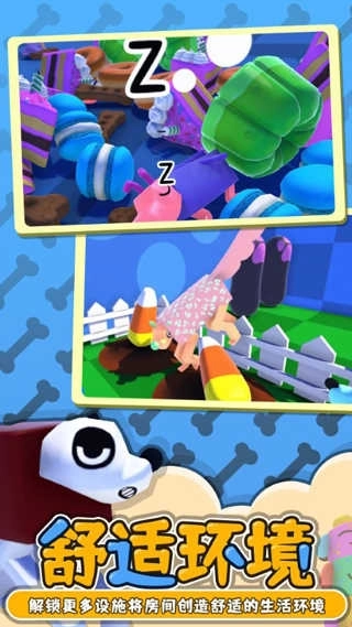 动态变化的背景音乐让游戏更具活力,音效与动作的无缝融合,构建起沉浸式的游戏氛围。玩家能在游戏里解锁各式各样的狗狗皮肤,塑造独一无二的角色外观。