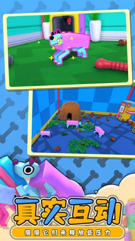 摇摆狗狗手机版是广州高桂科技打造的一款欢乐十足的3D宠物模拟沙盒游戏,其画面采用低多边形方块风格,配合萌趣夸张的角色动作设计,整体视觉呈现出轻松诙谐的氛围。在游戏里,玩家能够自由与狗狗互动,进行喂食、训练乃至换装等操作,狗狗的动作反馈鲜活自然,尤其是摇晃奔跑时的物理效果,常常让人忍俊不禁。这款游戏节奏轻快,操作简便易上手,非常适合利用碎片时间来放松解压。