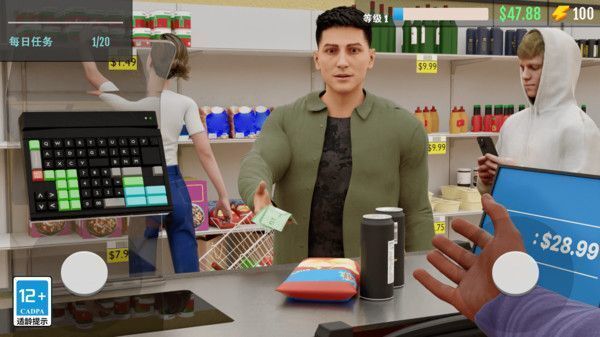 1、在游戏里,玩家扮演超市收银员的角色,要为所有前来结账的顾客提供优质服务,并且保证结账速度足够快,这样才能达成各式各样的挑战目标。