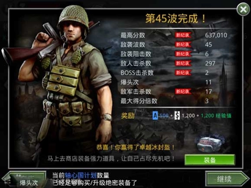二、用卡宾枪作为主力武器,搭配少量手雷,打基地战!一直打到第20关。然后在20关里站着不动让敌人击败,每被击败一次能获得1000战争币,大概半个多小时就能攒够钱买超级士兵了。