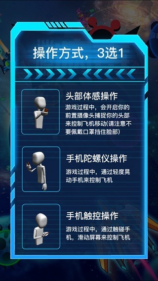 在游戏进行时,系统会启动你的前置摄像头,通过捕捉头部动作来操控飞机移动(温馨提示:请避免佩戴口罩遮挡面部)