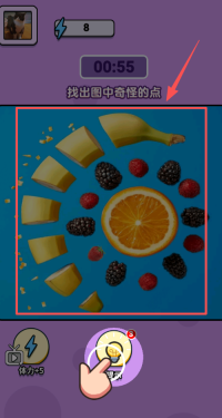 1、核心玩法是对比图片,快速辨认并找出里面不合常理的部分或是两张图片间的不同之处,找齐所有就能通关。