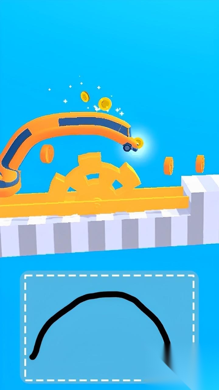 1. 屏幕底部有一块绘画区域,玩家能随意绘制线条,这些线条会即时转变为汽车的车身、轮轴或是支架。