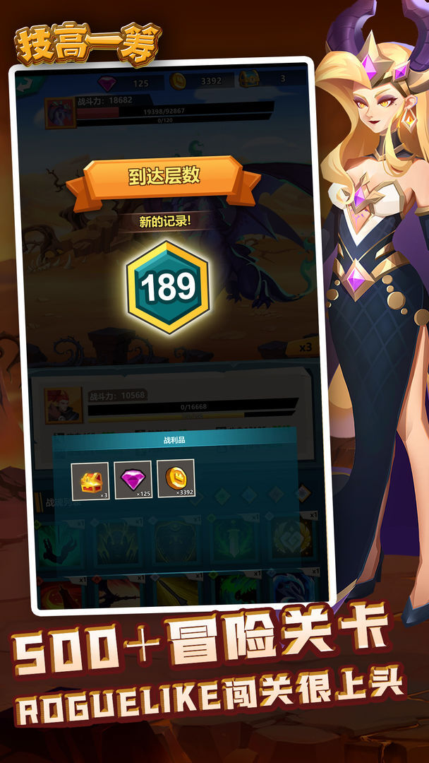 玩家能够尝试多样的角色养成策略,每关开启时从3个随机技能里挑选一个,组合出具备不同技能搭配的专属角色,体会别具一格的冒险通关乐趣,组建强力阵容迎战随机BOSS,顺利闯过关卡。