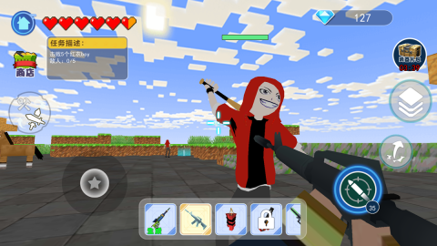1、在满是像素风格的开放世界里开启冒险,你可以通过完成任务、击败敌人、收集资源等途径推进,其中还包含拆家任务。