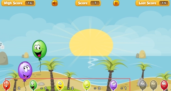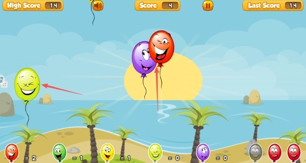 2、每种颜色的气球每点击一次对应不同的分数,要尽量点击分数高的。