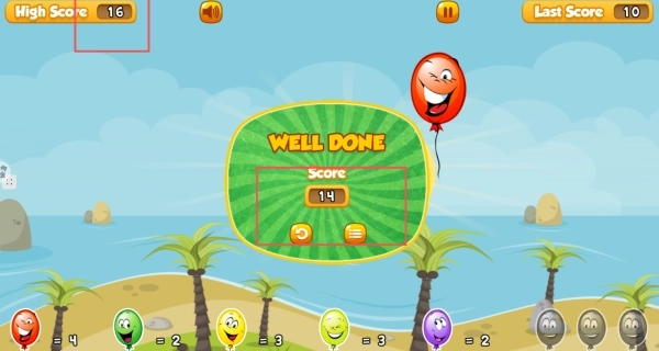 2、留意气球的分值情况,优先选择戳破分数高的气球,这样能积累更高的总分,去冲击高分记录。