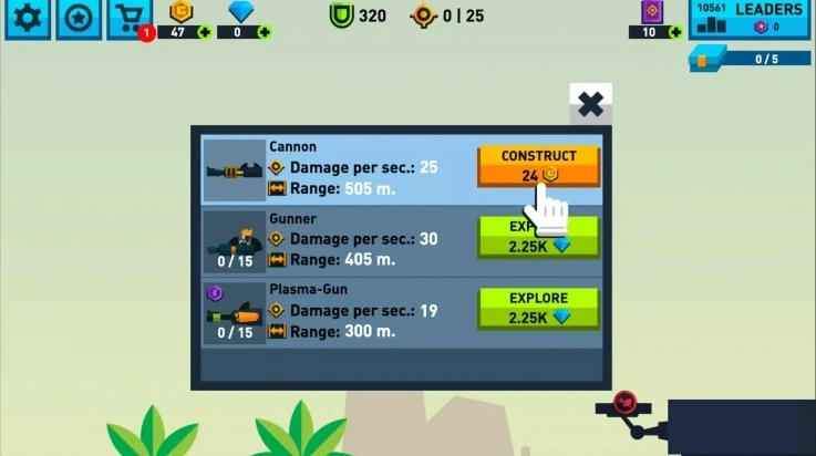 2、要建造巨型塔,收集零件,建造并升级炮塔装备。