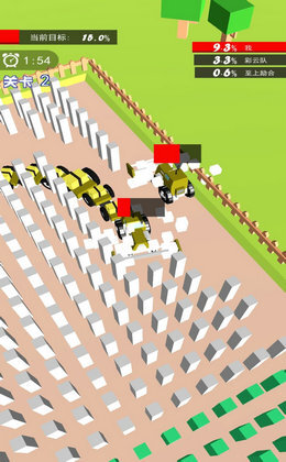 持续收割田地,壮大自己的队伍,注意避开对方车辆。