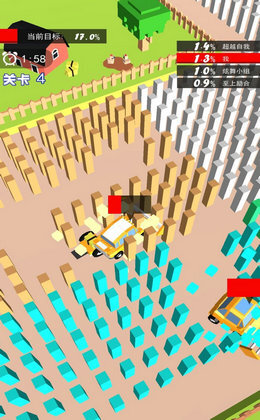 这是一款卡通风格清新明快的农场主题竞技游戏,玩家在游戏里要驾驶收割机,在一片成熟的麦田中展开收获作业。