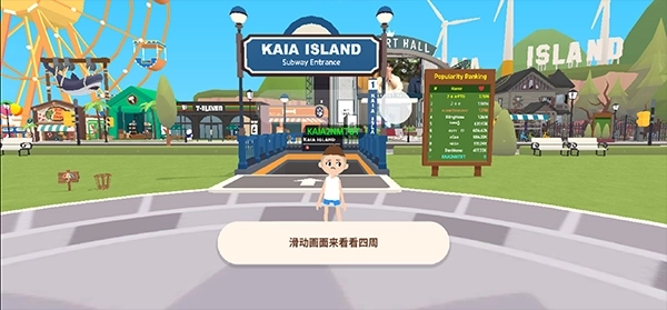 3、创建完成后进入kaia主岛,可通过双指缩放查看全景,通过单指滑动旋转视角;