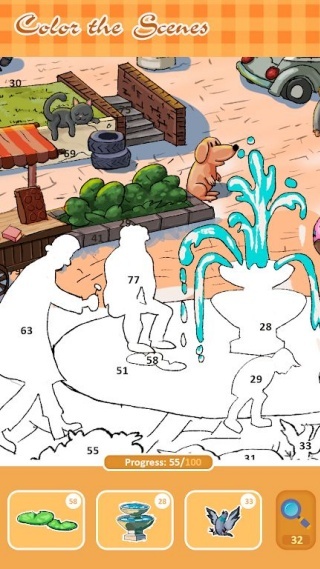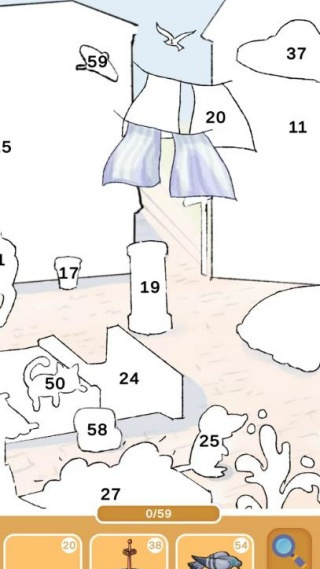 1. 玩家需在划分了数字区域的线稿画布上,挑选与编号对应的贴纸加以粘贴,一步步完成整个艺术作品的创作。
