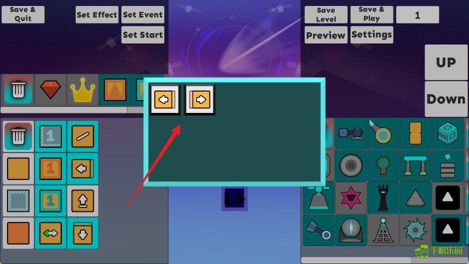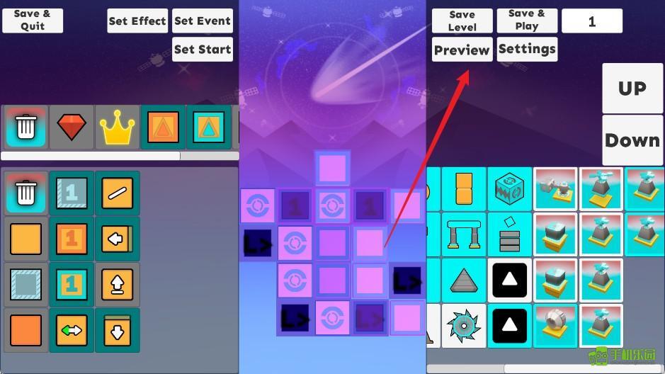 4、完成制作后,点击界面上的“箭头按钮”就能预览整段关卡的效果;