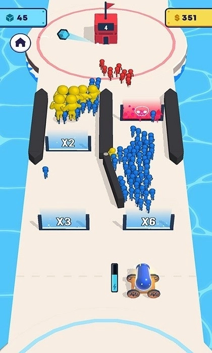 3、尽量把大炮发射到倍数更高的门上,这样就能壮大我方人群,进而占领所有基地!