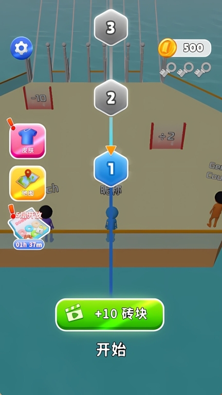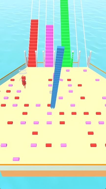 1、建议优先拾取相同颜色的砖块,积攒到足够数量后能快速搭建桥梁,就算碰到较宽的空隙也无需担心,注意不要浪费时间混杂捡拾不同颜色的砖块。