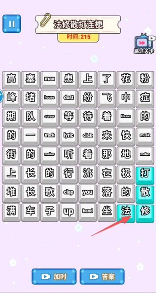 1、首先浏览当前关卡给出的所有零散词汇,快速扫读全部内容,初步构思可能的搭配思路。