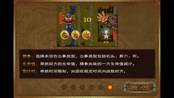 单挑环节引入趣味性猜拳机制,三选一判定胜负。胜负不仅影响双方生命损耗,更关联后续士气状态与援军响应速度。