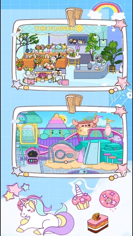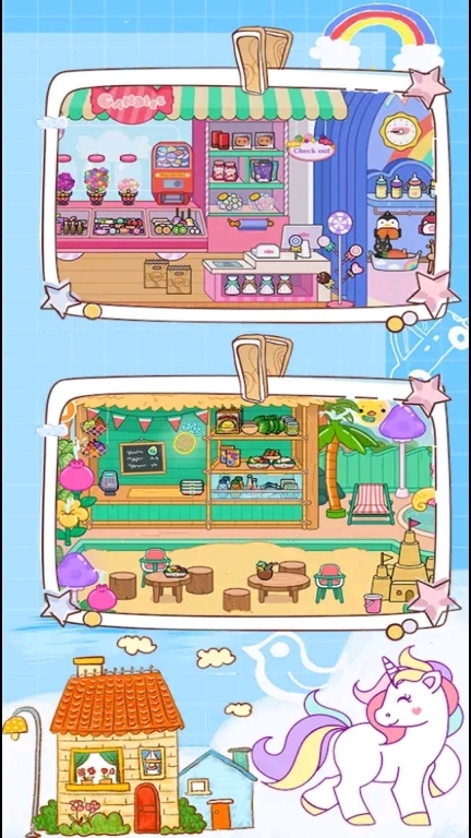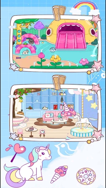3.丰富多样的个性化装扮道具可供你随心组合搭配,亲手打造出你心中理想的托卡小镇。