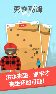 勇攀高峰是一款攀岩挑战类游戏,玩家在游戏里将扮演一名攀岩选手,得在洪水来临前持续向上攀登,克服形形色色的困难挑战,勇攀高峰并取得胜利,对这类攀岩闯关游戏感兴趣的玩家还在犹豫什么,赶紧来勇攀高峰游戏里体验一番吧!