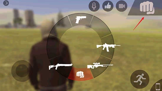 右上角拳头图标是你的武器轮盘,轻触即可切换手枪、霰弹、冲锋枪或近战器械;