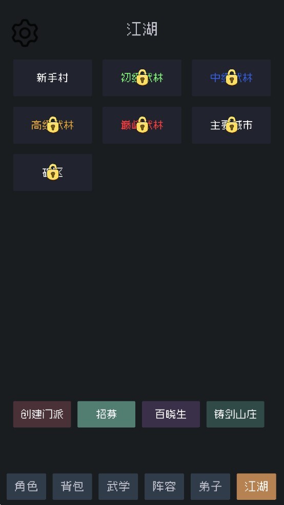 创立门派:可自定义门派的名称、标识与武学流派,招纳弟子并为他们指派任务。