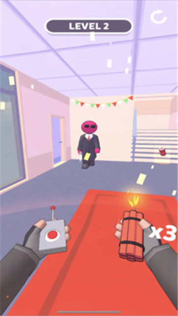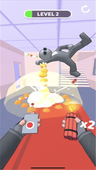 核心任务:在卡通风格的3D场景里布设炸药,借助引爆来破坏指定目标(涵盖建筑、道具,或波及到橡皮人),从而达成“炸毁所有事物”的目标;