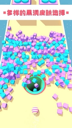 手指轻点屏幕就能轻松操控黑洞,只要吞噬掉那些小方块,你的黑洞就会随之变大。